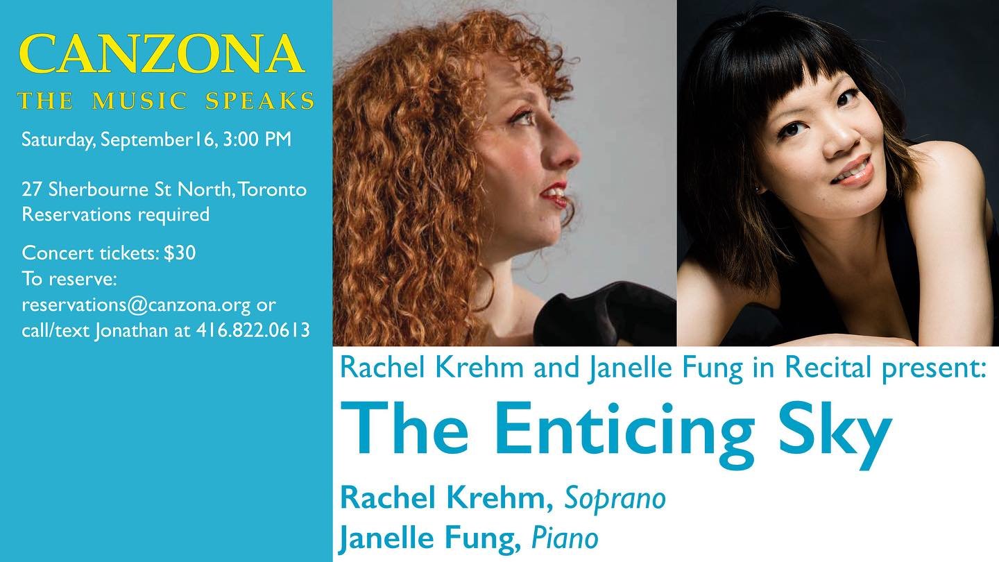 Rachel and Janelle team up to share some fabulous and mostly Canadian art song which all deserve a place alongside the most beloved in the repertoire. Selections from Ryan Trew’s Song cycle Come Closer with poetry by Rachel’s late sister Elizabeth share insights from the beautiful imagination of a child, to the hope of what life beyond death may bring. English composer Ethel Smyth depicts the many moods of the sea in her dramatic song cycle The Three Moods of the Sea. Dorothy Chang creates miniatures to depict the contrasting moments found in nature in Songs of Woods and Water. Anna Pidgorna brings us to the world of Irish Keening Songs, and the funeral lament of a dearly departed husband taken too soon. Cecilia Livingston’s new song cycle luna premit portrays the many faces of the moon in wildly visceral settings.We can’t wait to share these amazing works with you